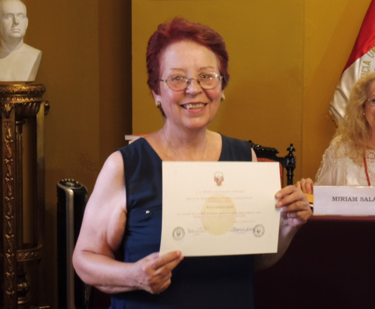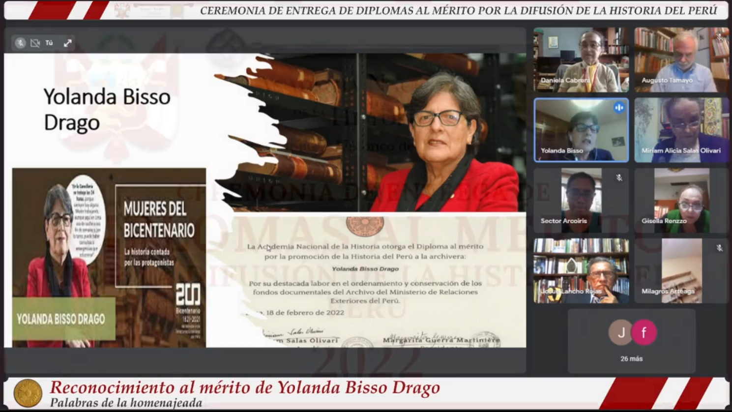 Yolanda Bisso Drago, por su destacada labor en el ordenamiento y conservación de los fondos documentales del Archivo del Ministerio de Relaciones Exteriores.