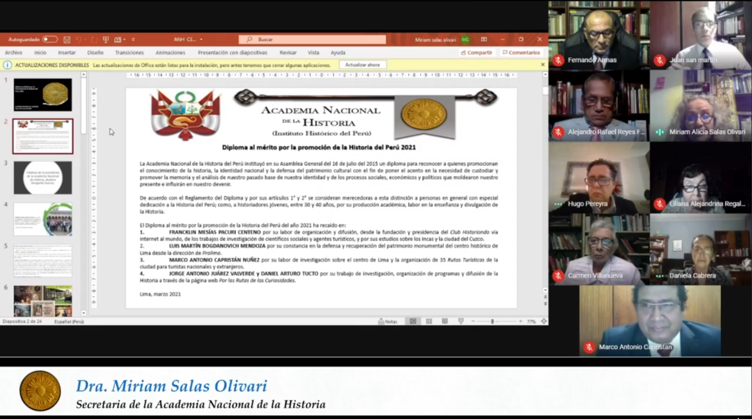 El Diploma al Mérito por la promoción de la Historia del Perú del año 2021 ha recaído en: