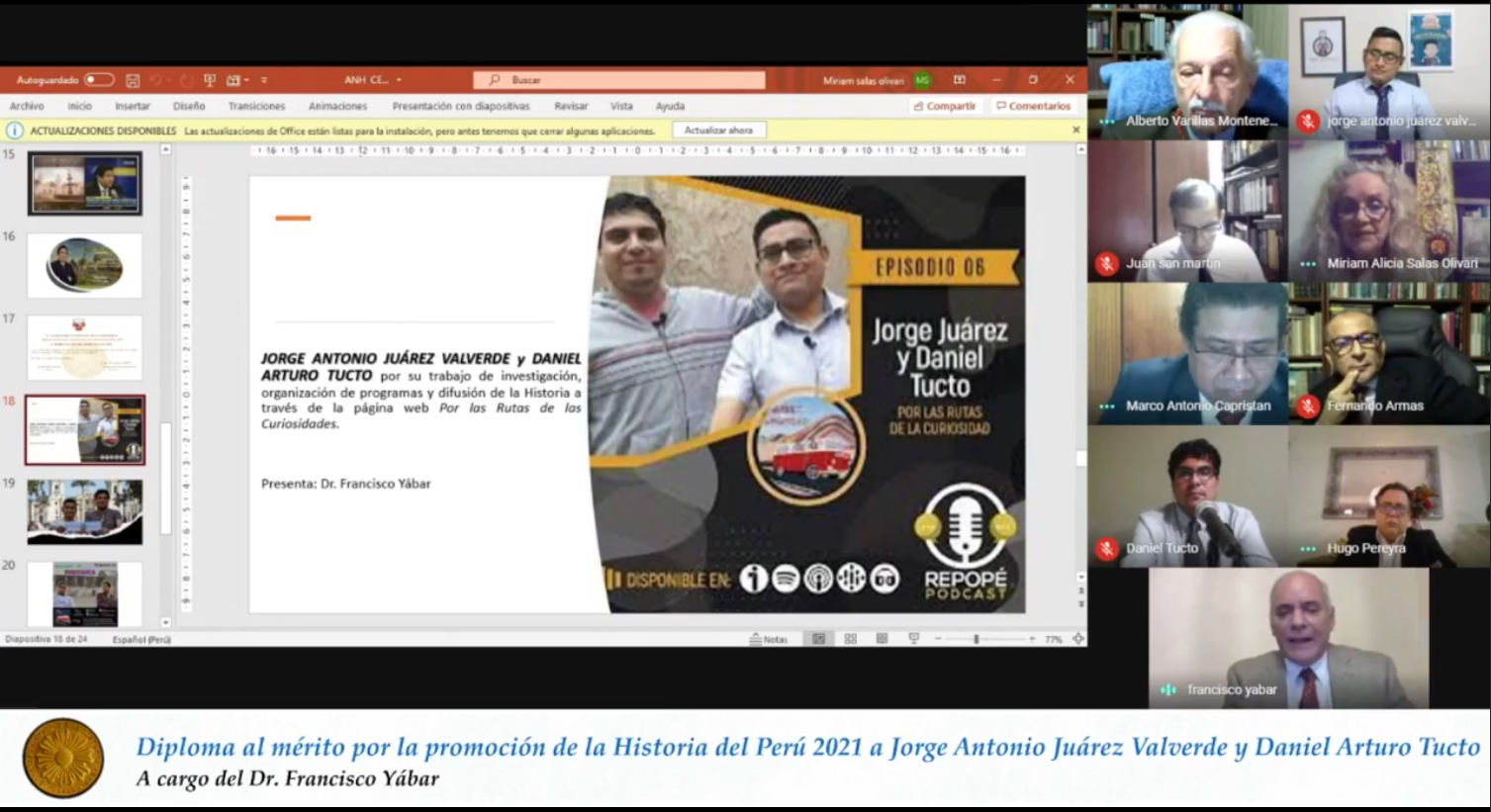 Jorge Antonio Juárez Valverde y Daniel Arturo Tucto, por su trabajo de investigación, organización de programas y difusión de la Historia a través de la página web Por las Rutas de las Curiosidades.