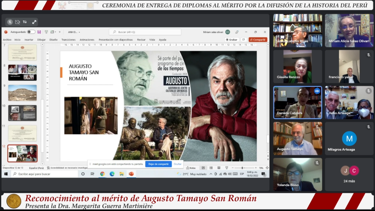 Diploma al Mérito por la Promoción de la Historia del Perú 2022