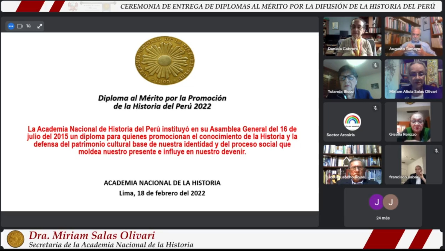 El Diploma al mérito por la promoción de la Historia del Perú del año 2022 ha recaído en: