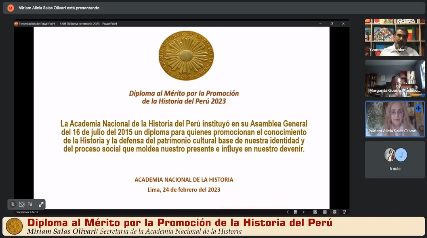El Diploma al mérito por la promoción de la Historia del Perú del año 2023 ha recaído en: